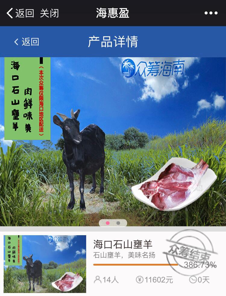 3月19日,海南股權(quán)交易中心“眾籌海南”石山壅羊眾籌項目圓滿結(jié)束,籌集金額11602元,眾籌成功率386.73%,成功實現(xiàn)資金募集目標。“石山壅羊”是海南石山特產(chǎn)之一,因其特殊的喂養(yǎng)飼料和獨特的養(yǎng)殖方式而出名。石山...