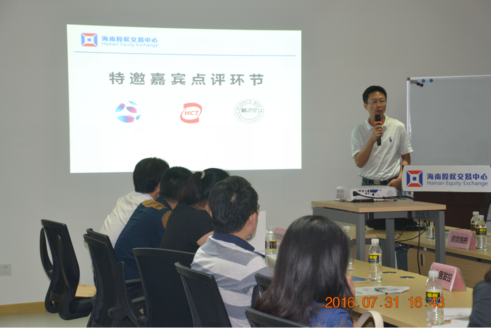 7月31日下午,海南股權(quán)交易中心第3期企業(yè)路演暨投融資對接會,在海南老城經(jīng)濟(jì)開發(fā)區(qū)海南生態(tài)軟件園B13號樓舉行。共有3家路演企業(yè),8家投資機(jī)構(gòu)及多家企業(yè)參加。