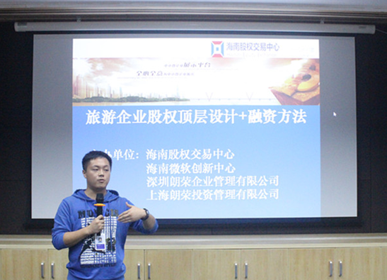11月9日,海南股權(quán)交易中心聯(lián)合深圳朗榮企業(yè)管理有限公司、上海朗榮投資管理有限公司、海南微軟創(chuàng)新中心有限公司為海南旅游企業(yè)帶來創(chuàng)業(yè)力課程——旅游企業(yè)股權(quán)頂層設(shè)計(jì)+融資方法培訓(xùn)。