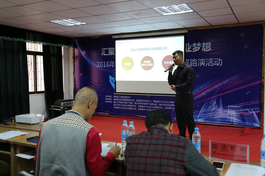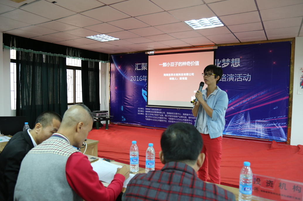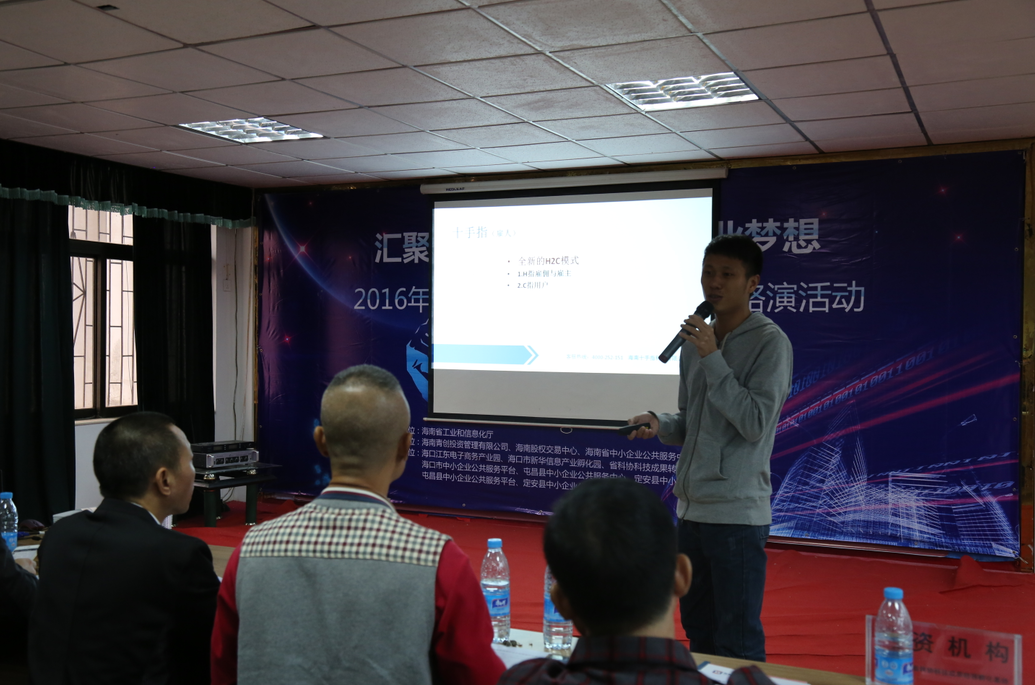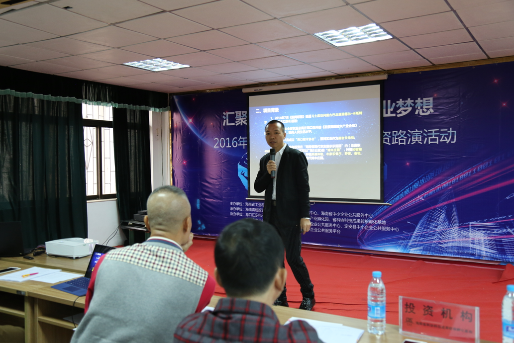 11月24日,“匯聚投資力量,助燃創(chuàng)業(yè)夢想——2016年海南省創(chuàng)業(yè)創(chuàng)新項目投資路演”在海南省科技活動中心順利舉行,同時這也是海南股權(quán)交易中心第16期企業(yè)路演?;顒佑珊D鲜」I(yè)和信息化廳主辦,海南股權(quán)交易中心、海南青創(chuàng)投資管理有限公司、海南省中小企業(yè)服務(wù)中心聯(lián)合承辦,??诮瓥|電子商務(wù)產(chǎn)業(yè)園等多家單位協(xié)辦。9家路演企業(yè)、團(tuán)隊及6家投資機(jī)構(gòu)參加此次路演活動。