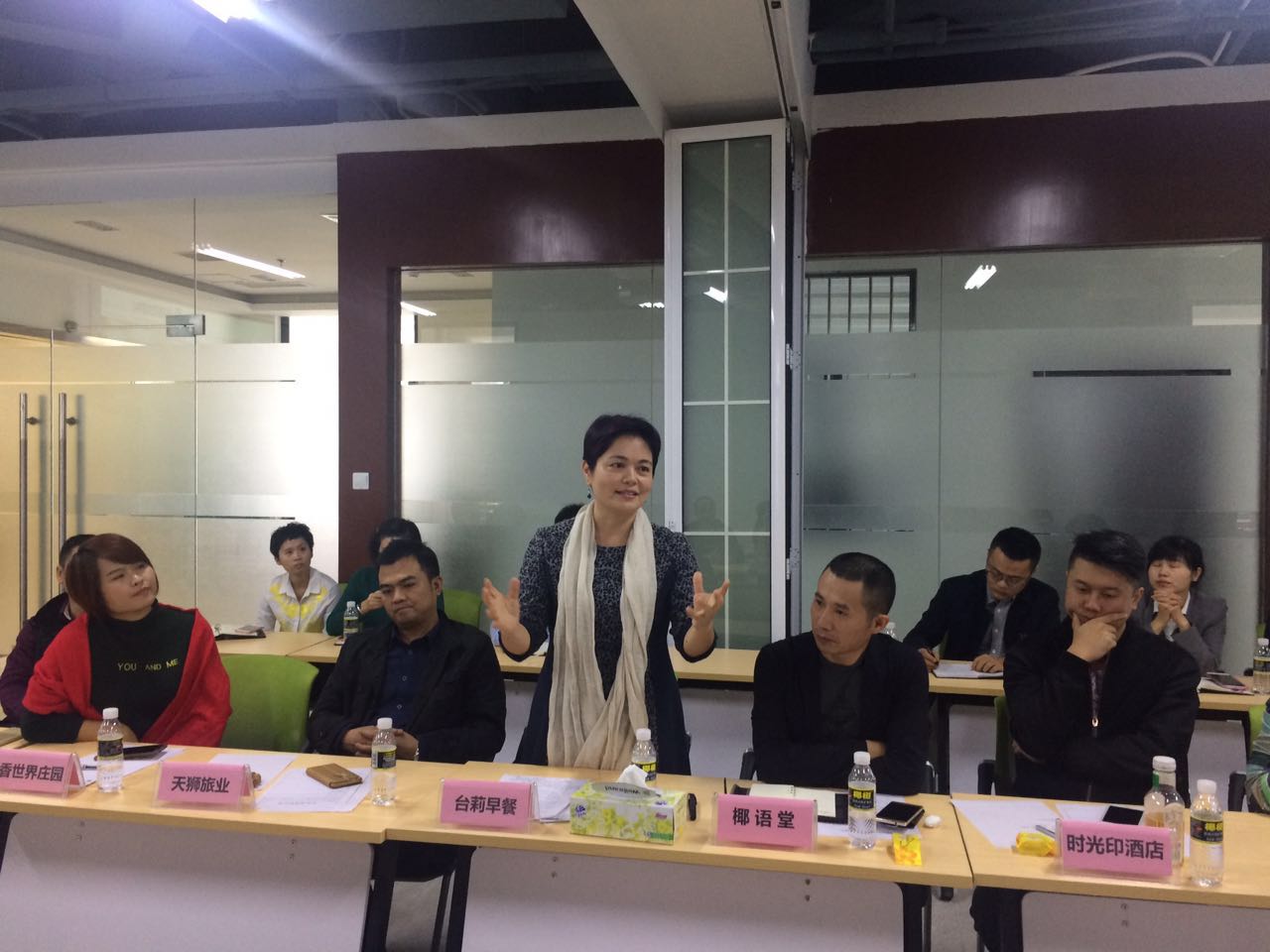 會(huì)上,程棟才就目前海南旅游企業(yè)的發(fā)展現(xiàn)狀及獲得相關(guān)融資的旅游掛牌企業(yè)情況進(jìn)行了介紹,并就“全域旅游”形勢(shì)下企業(yè)如何結(jié)合行業(yè)發(fā)展方向及政策更好地推動(dòng)企業(yè)掛牌交易板,走向新三板及更高層次資本市場(chǎng)進(jìn)行了闡述。隨后,吳麗娟就海南旅游業(yè)現(xiàn)狀和面臨的問(wèn)題進(jìn)行了分析,并用“智慧、個(gè)性、融合”六個(gè)字進(jìn)行了總結(jié)概括。陳揚(yáng)樂(lè)就旅游市場(chǎng)面臨的市場(chǎng)、角色、組織等的轉(zhuǎn)型趨勢(shì)進(jìn)行了深入介紹,并表示愿意與海南旅游企業(yè)開(kāi)展深入合作,提供人才培養(yǎng)和支持。