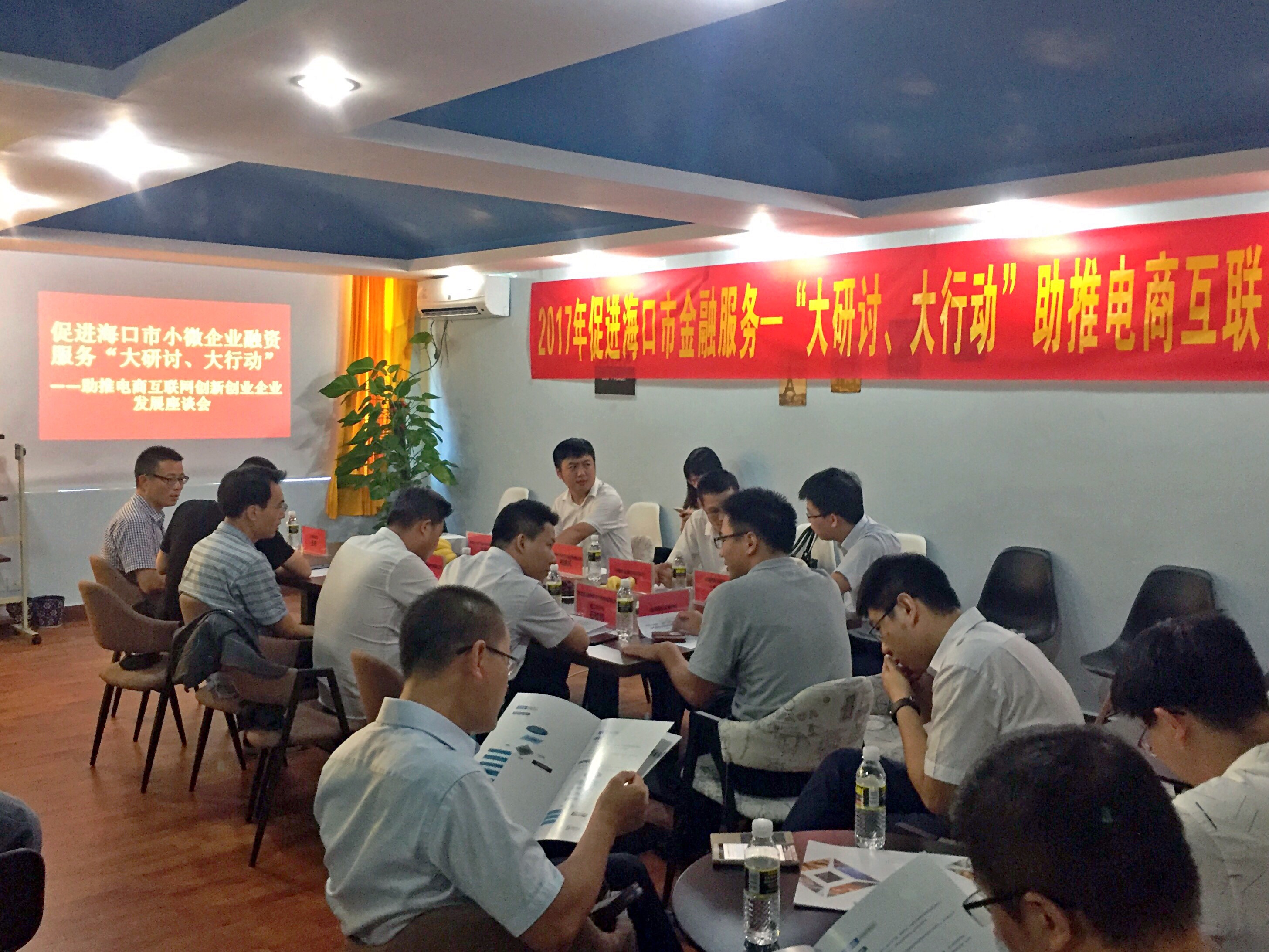 本次2017年促進??谑薪鹑诜?wù)—“大研討、大行動”助推電商互聯(lián)網(wǎng)創(chuàng)新創(chuàng)業(yè)企業(yè)發(fā)展座談會活動,由??谑猩虅?wù)局及??谑锌乒ば啪致?lián)合指導(dǎo),海口市中小企業(yè)公共服務(wù)平臺主辦,海南青創(chuàng)投資管理有限公司承辦,海南股權(quán)交易中心協(xié)辦?;顒又荚谏疃韧诰螂娮由虅?wù)、互聯(lián)網(wǎng)創(chuàng)新創(chuàng)業(yè)企業(yè)實際需求,推動金融資源要素更多向電商互聯(lián)網(wǎng)企業(yè)配置,幫助互聯(lián)網(wǎng)創(chuàng)新創(chuàng)業(yè)企業(yè)克服融資困難,滿足企業(yè)金融需求,促進中小微企業(yè)發(fā)展。