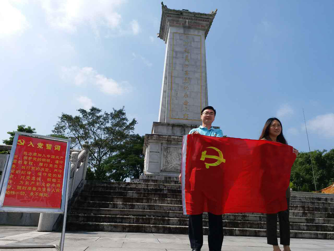 在參觀過程中,黨員們駐足觀看,回顧起義的光榮歷史,緬懷先烈們的豐功偉績。一件件先烈的遺物、一幅幅珍貴的照片、一篇篇詳實的史料,再現(xiàn)當(dāng)年白沙起義革命前輩們英勇奮戰(zhàn)的場景,彰顯出海南黎族苗族人民在艱苦的條件下對革命事業(yè)的無限忠誠和為革命鞠躬盡瘁、死而后己的崇高品質(zhì)。隨后,在莊嚴(yán)的革命先烈碑前,黨員們懷著無比崇敬的心情在烈士碑前重溫入黨誓詞。