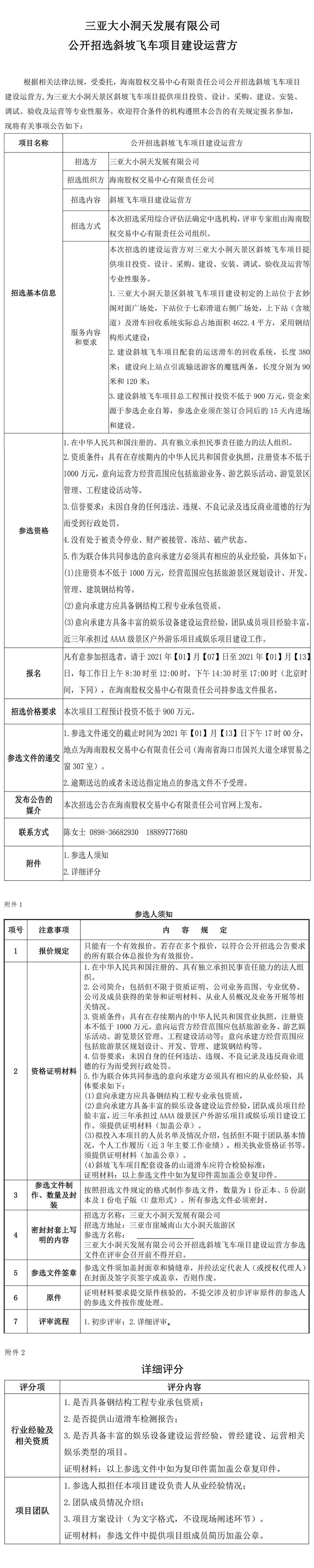 關(guān)于三亞大小洞天發(fā)展有限公司公開招選斜坡飛車項(xiàng)目建設(shè)運(yùn)營方的公告