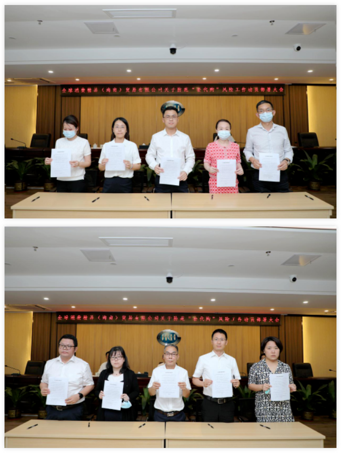 5月6日下午,在全省打擊走私工作會(huì)議結(jié)束后,??厝蚓费杆俳M織召開防范“套代購(gòu)”風(fēng)險(xiǎn)工作動(dòng)員部署會(huì),學(xué)習(xí)貫徹習(xí)近平總書記關(guān)于防控“套代購(gòu)”走私重要指示批示精神和省委書記馮飛、省政府代省長(zhǎng)劉小明重要講話精神以及陳懷宇副省長(zhǎng)專題會(huì)議精神,對(duì)全球精品防范“套代購(gòu)”風(fēng)險(xiǎn)作出安排部署。海南控股黨委書記、董事長(zhǎng)周軍平出席會(huì)議并提出工作要求。