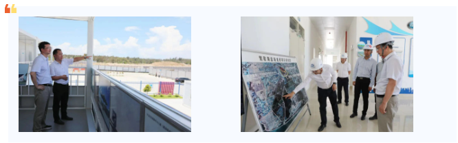 在鶯歌海鹽場納潮湖一、二期200MW光伏項(xiàng)目建設(shè)現(xiàn)場,打樁機(jī)轟鳴作業(yè),兩千余根管樁扎實(shí)整齊排列。周軍平詳細(xì)了解材料運(yùn)輸調(diào)度、圍堰施工進(jìn)度、項(xiàng)目智能化運(yùn)作等情況及存在的困難,并對目前的施工進(jìn)展給予肯定。他強(qiáng)調(diào),納潮湖200MW光伏項(xiàng)目作為海南最大的灘涂光伏項(xiàng)目,對促進(jìn)地區(qū)經(jīng)濟(jì)發(fā)展,助推自貿(mào)港實(shí)現(xiàn)“碳達(dá)峰、碳中和”戰(zhàn)略具有重大意義,務(wù)必將創(chuàng)建“四個(gè)工程”的要求貫穿項(xiàng)目建設(shè)始終,嚴(yán)把質(zhì)量標(biāo)準(zhǔn),堅(jiān)持精益求精,抓好每個(gè)建設(shè)環(huán)節(jié);要時(shí)刻緊繃安全生產(chǎn)這根弦,確保不發(fā)生安全事故;要嚴(yán)格貫徹綠色發(fā)展理念,注重在施工過程中采用新技術(shù)、新工藝,落實(shí)各項(xiàng)生態(tài)環(huán)境保護(hù)措施;要細(xì)化責(zé)任、落實(shí)到人,杜絕吃拿卡要、利益輸送等違紀(jì)違法行為。周軍平還前往鶯歌海鹽場,了解員工的生產(chǎn)生活情況、退休工人的福利待遇及目前生產(chǎn)經(jīng)營存在的難點(diǎn)堵點(diǎn)問題。他勉勵(lì)大家保持迎難而上、開拓進(jìn)取的勢頭,積極拓展新業(yè)務(wù)新市場,提高生產(chǎn)效率與經(jīng)營水平,培養(yǎng)更多高素質(zhì)技能人才,進(jìn)一步加強(qiáng)自主品牌建設(shè),加快市場化轉(zhuǎn)型步伐。
