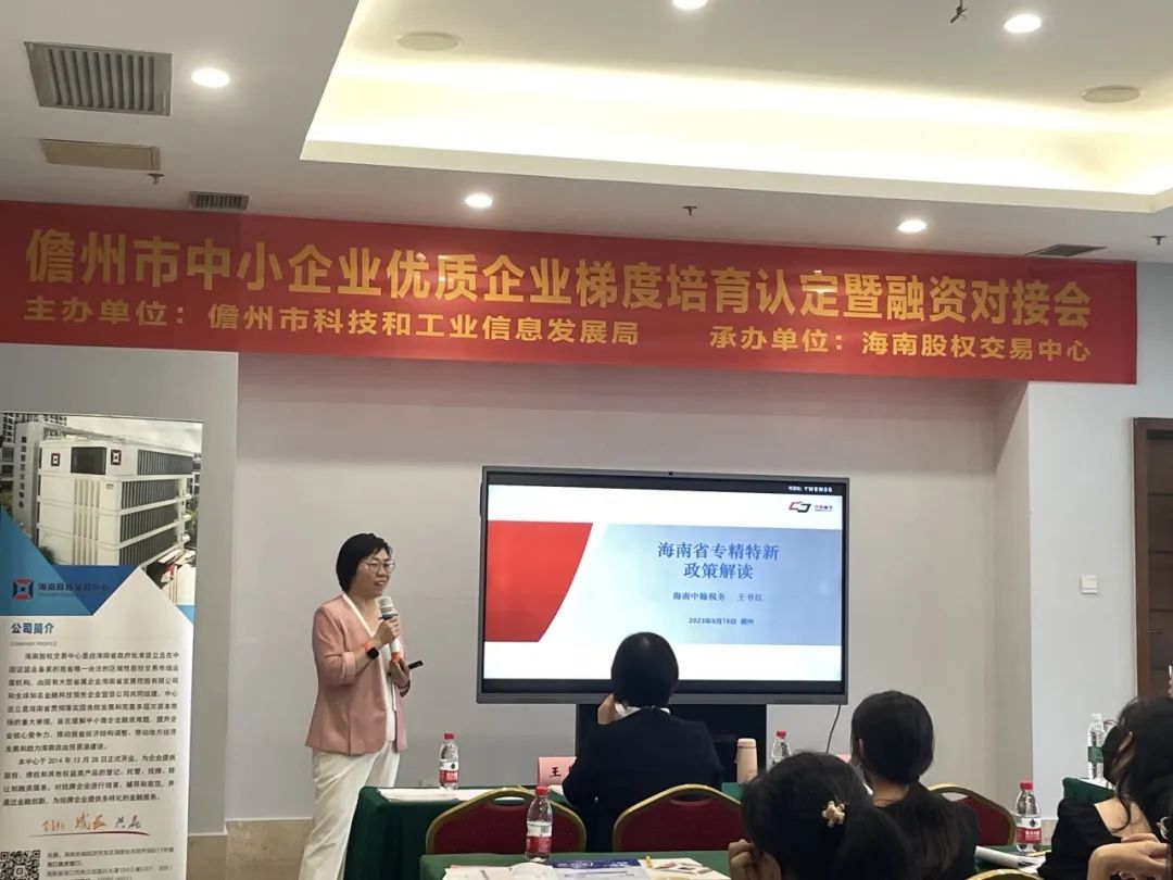 下午的專題培訓(xùn)活動(dòng)在儋州市永嘉大酒店舉行,培訓(xùn)會(huì)上,海南股交工作人員圍繞“我國(guó)多層次資本市場(chǎng)體系”“融資渠道分析”“掛牌支持政策”等方面,為企業(yè)講解如何通過(guò)多層次資本市場(chǎng)謀求新發(fā)展。通過(guò)不同資本路徑對(duì)企業(yè)發(fā)展影響的詳細(xì)講解,幫助企業(yè)理清未來(lái)發(fā)展方向,提前做好資本路徑規(guī)劃,借道多層次資本市場(chǎng)實(shí)現(xiàn)企業(yè)高質(zhì)量發(fā)展。