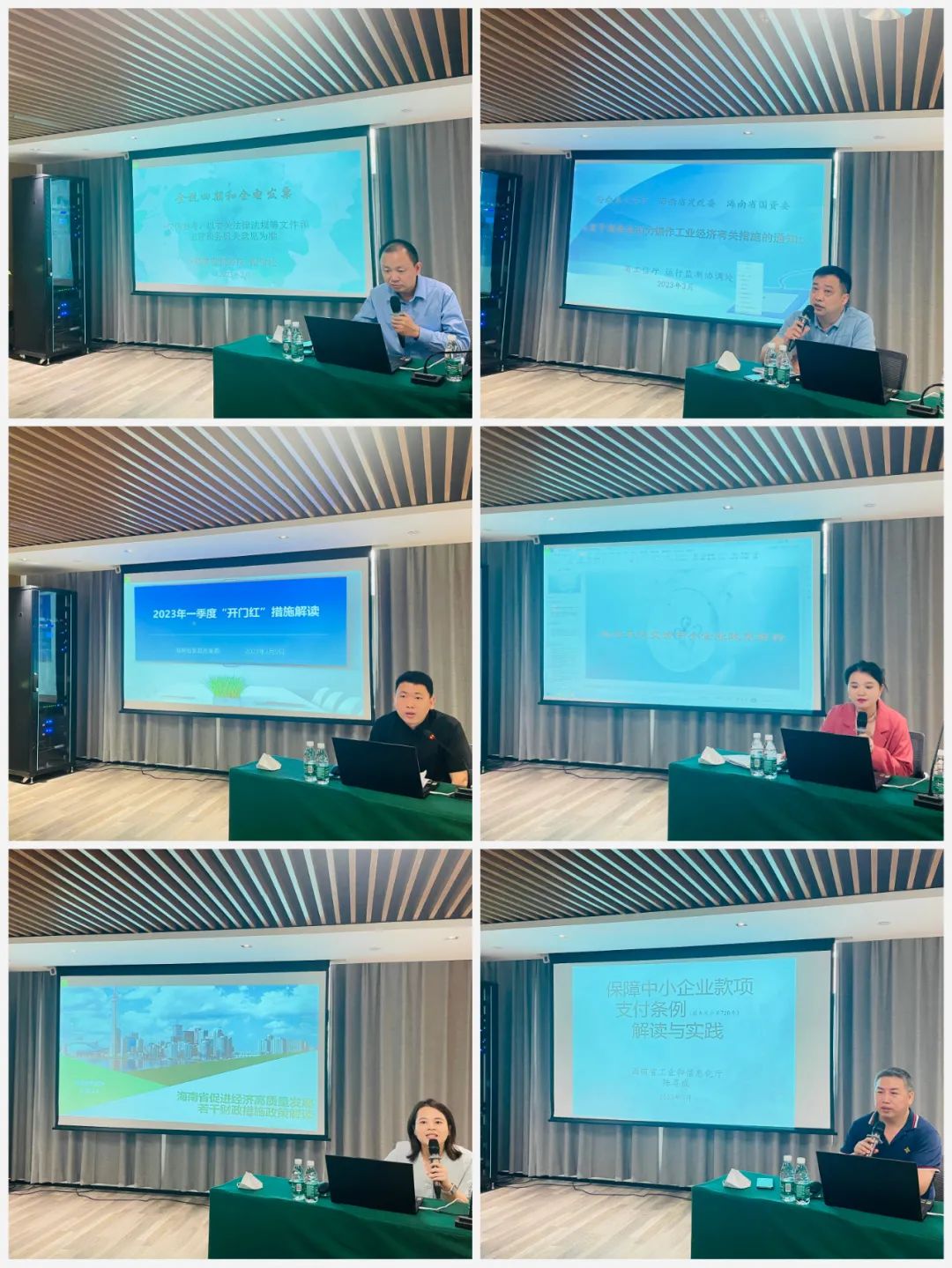 省工信廳、省財(cái)政廳、省發(fā)改委、省稅務(wù)局等政府部門代表分別從保障中小企業(yè)款項(xiàng)支付條例、海易兌、專精特新中小企業(yè)培育、加力振作工業(yè)經(jīng)濟(jì)有關(guān)措施、2023年一季度“開門紅”措施、加強(qiáng)政府采購(gòu)、促進(jìn)經(jīng)濟(jì)高質(zhì)量發(fā)展若干財(cái)政措施、減稅降費(fèi)等方面進(jìn)行詳細(xì)解讀,同時(shí)也與企業(yè)代表們開展座談交流,對(duì)企業(yè)提出的難點(diǎn)訴求進(jìn)行詳細(xì)解答。