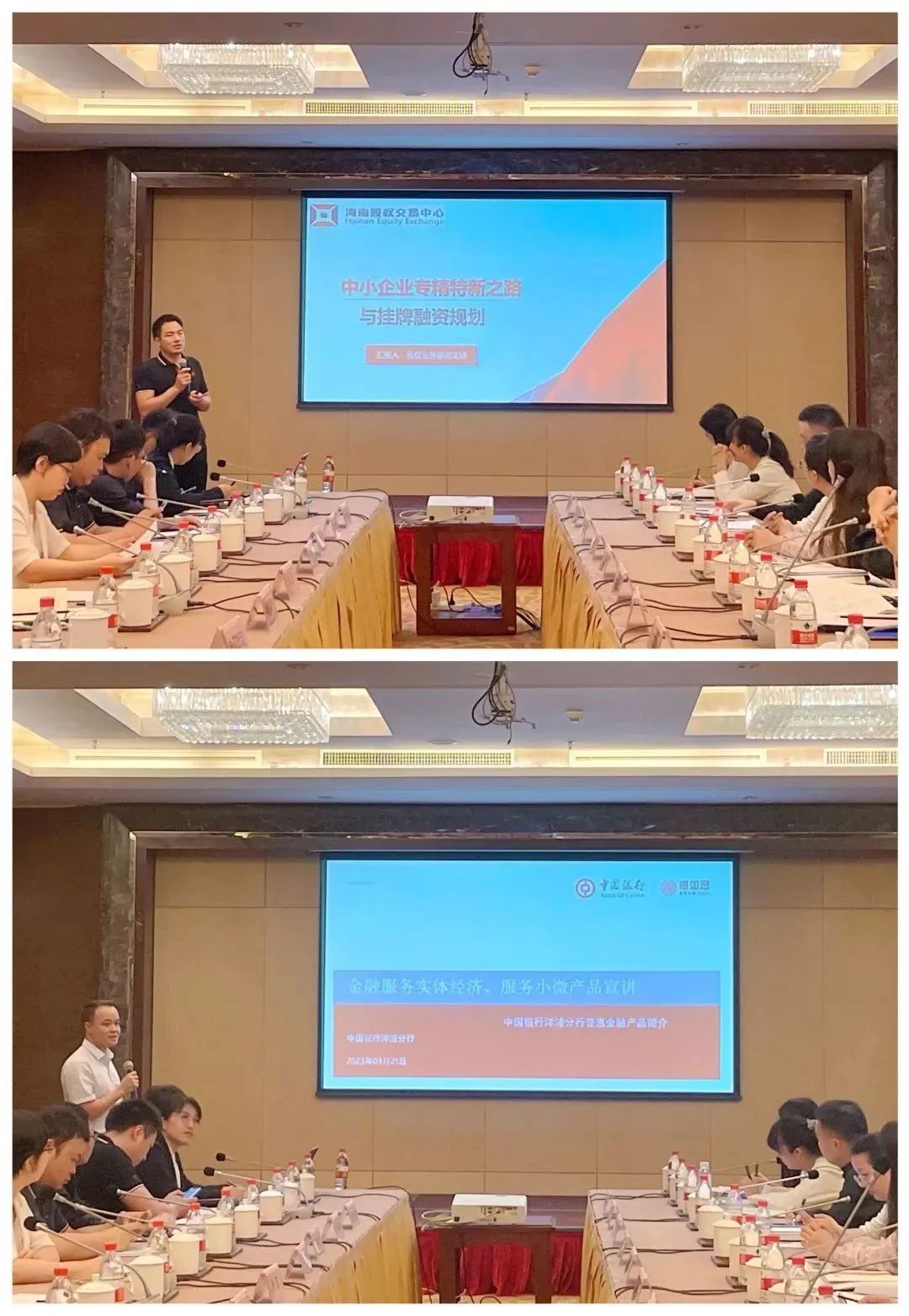 海南股權(quán)交易中心及中國(guó)銀行儋州支行相關(guān)負(fù)責(zé)人針對(duì)專精特新企業(yè)如何規(guī)劃上市路徑及企業(yè)在融資過程中遇到的堵點(diǎn)、難點(diǎn)進(jìn)行分析講解,并對(duì)相關(guān)服務(wù)和產(chǎn)品進(jìn)行宣介。會(huì)后,現(xiàn)場(chǎng)工作人員與企業(yè)代表充分對(duì)接交流,對(duì)企業(yè)代表提出的問題,逐一進(jìn)行解答。
