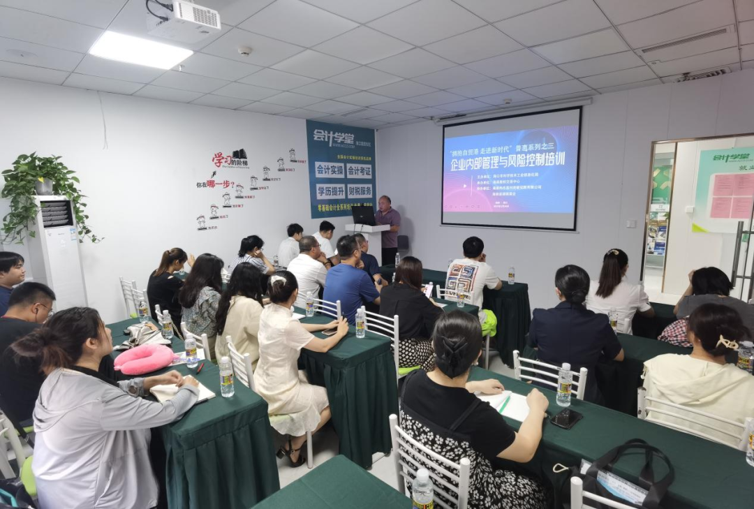 活動(dòng)在??谥懿髲B舉行,由會(huì)計(jì)學(xué)堂金牌講師屠富 老師向我省中小企業(yè)介紹了現(xiàn)代企業(yè)管理制度,以及如何完善企業(yè)的內(nèi)部控制體系規(guī)范進(jìn)行有效監(jiān)督約束,避免風(fēng)險(xiǎn),確保企業(yè)經(jīng)營(yíng)活動(dòng)的正常運(yùn)行。約20多家企業(yè)到場(chǎng)參與培訓(xùn)。