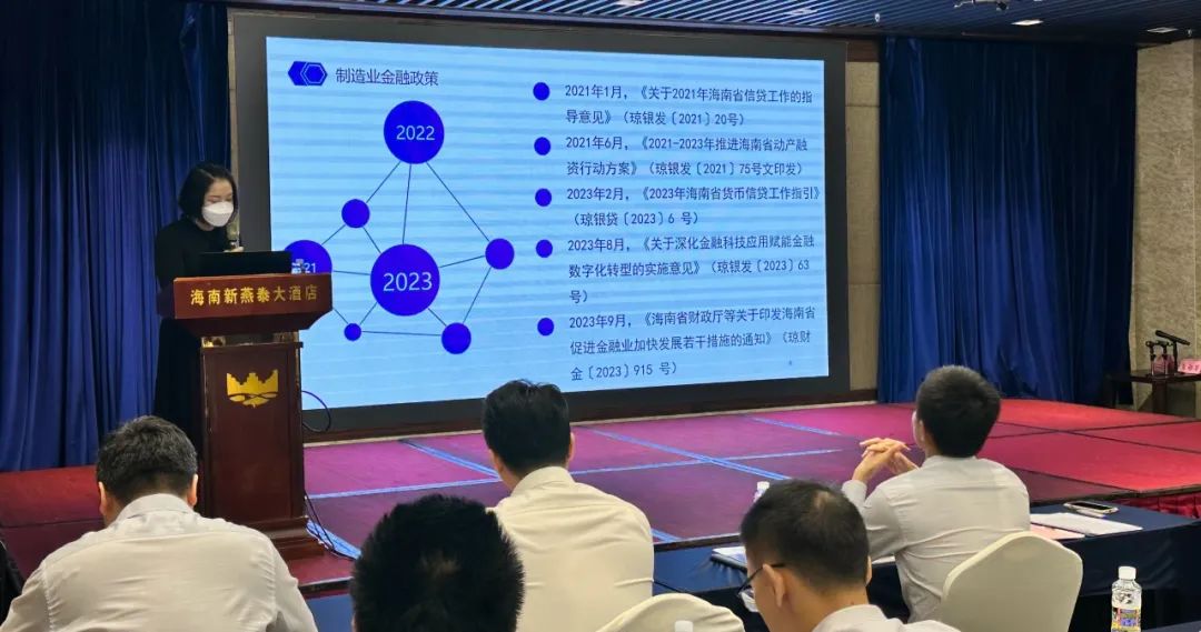 會上,中國人民銀行海南省分行相關人員就“一鏈一策一批”中小微制造業(yè)金融相關政策進行了深入詳細的講解,通過政策宣講,讓參會企業(yè)更深入了解海南制造業(yè)最新政策動態(tài)、融資支持政策及熟悉金融服務產(chǎn)品,助力企業(yè)利用好各項惠企政策,及時享受政策紅利。