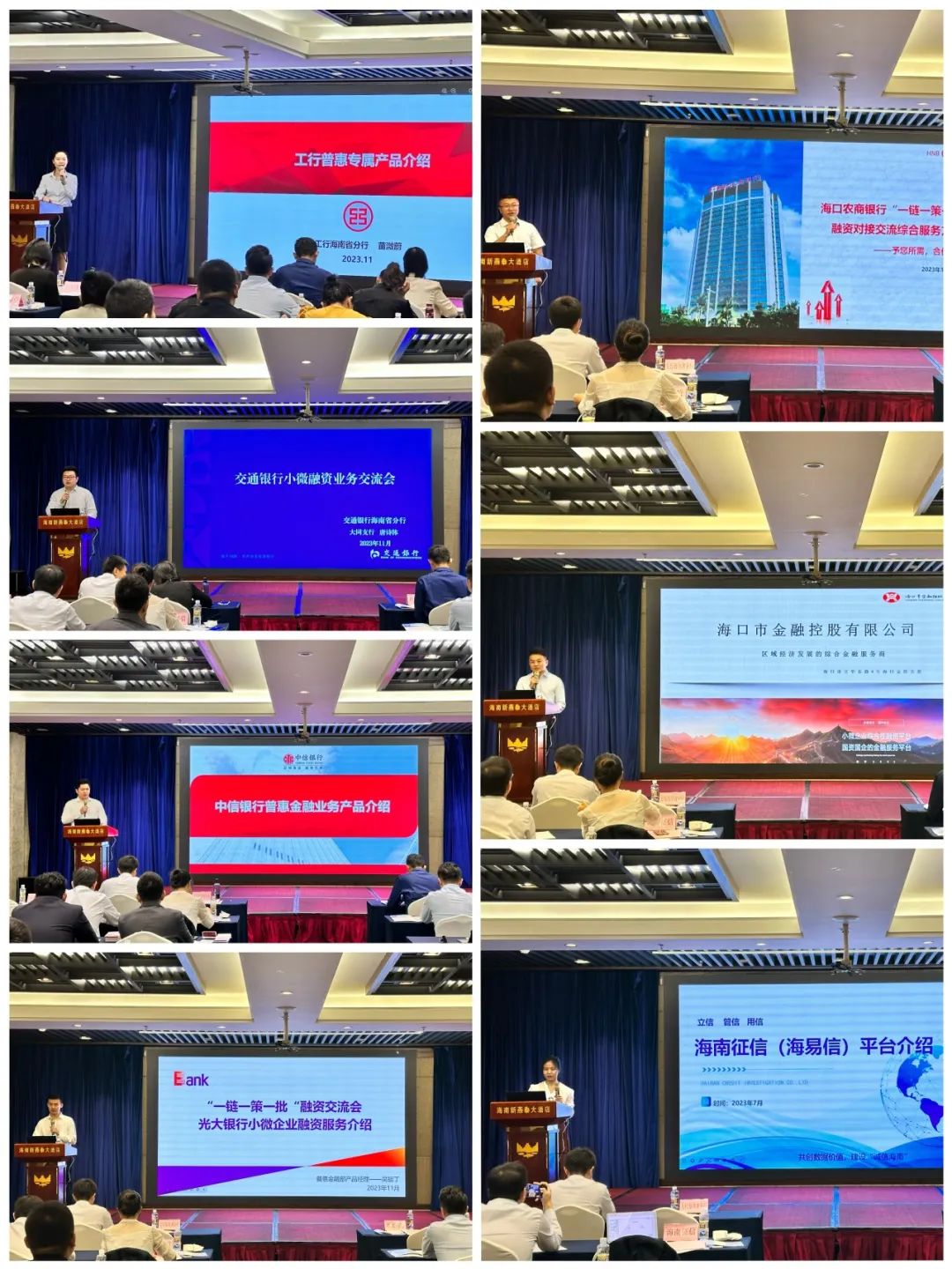 隨后,中國工商銀行、交通銀行、中信銀行、光大銀行、海南省農(nóng)信社、??谑腥谫Y擔保、海南征信等金融機構相關人員依次分享了各自目前最新的融資產(chǎn)品及相關申請條件,并圍繞企業(yè)實際融資需求,進行了有針對性的講解。