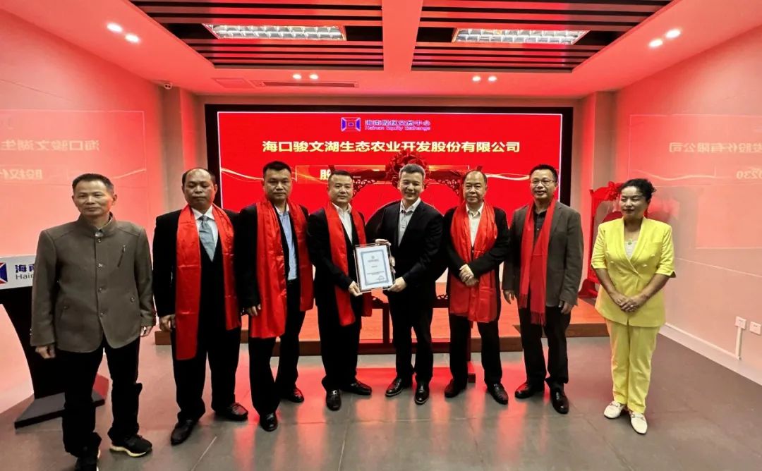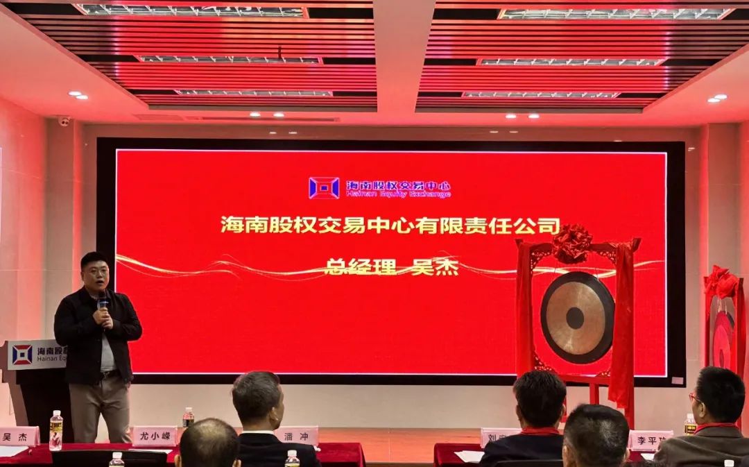 2023年12月28日下午,海南股交在老城舉辦交易板企業(yè)掛牌鳴鑼儀式,海南金控黨總支副書記、副總經(jīng)理潘沖,海南省商業(yè)總會會長劉宏和,海南省貿(mào)促會國際聯(lián)絡(luò)部部長李平功、四級調(diào)研員蔡國軍,海南股交總經(jīng)理吳杰及相關(guān)金融機構(gòu)、企業(yè)代表近60人參加本次活動。四家優(yōu)質(zhì)企業(yè)??隍E文湖生態(tài)農(nóng)業(yè)開發(fā)股份有限公司、中視智行科技(海南)股份有限公司、海南逸途文旅發(fā)展股份有限公司、嘉瑞互聯(lián)網(wǎng)科技(海南)股份有限公司分別上臺鳴鑼,成功掛牌海南股交交易板。