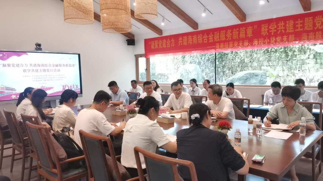 海南結(jié)算黨支部書記、董事長文于佳,海控小貸黨支部書記、董事長潘沖,海南股交黨支部書記、董事長朱磊,以及各支部黨員同志、干部職工參加本次活動。