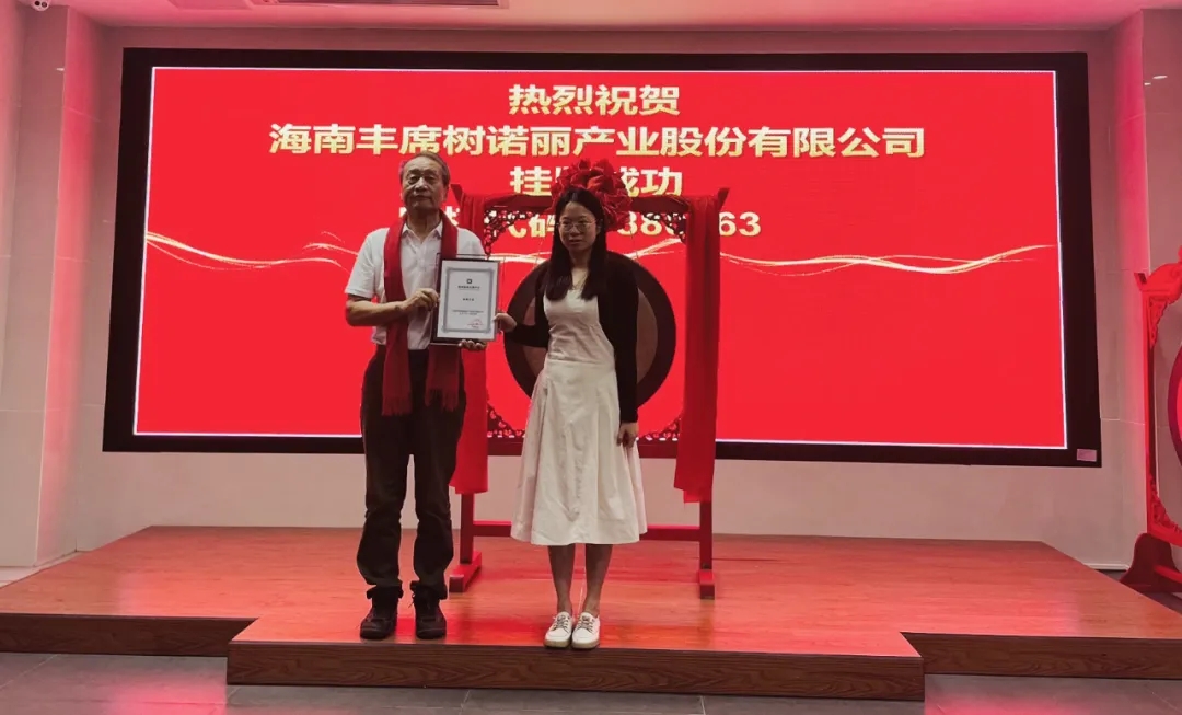 在全場來賓的見證下,澄邁縣金融工作中心主任許夢瑤為豐席樹頒發(fā)了掛牌企業(yè)牌匾,并一起共同鳴鑼。豐席樹此次成功掛牌海南股交交易板,標(biāo)志著企業(yè)向資本市場邁出了重要一步。開啟了企業(yè)通過資本市場實現(xiàn)規(guī)范健康發(fā)展的嶄新篇章。