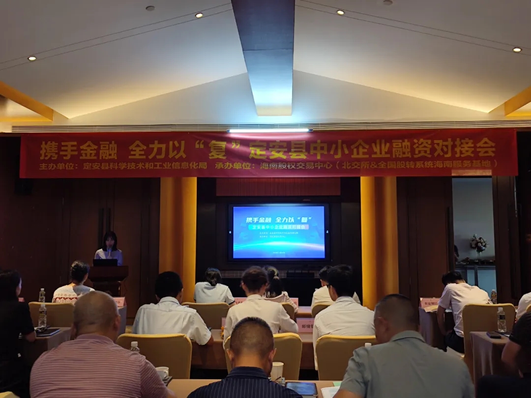此次活動由定安縣科工信局主辦、海南股權(quán)交易中心承辦。定安縣科工信局、定安縣農(nóng)業(yè)農(nóng)村局、定安縣旅文局、定安縣工商業(yè)聯(lián)合會、金融機(jī)構(gòu)相關(guān)負(fù)責(zé)人及企業(yè)代表近50人參加會議。