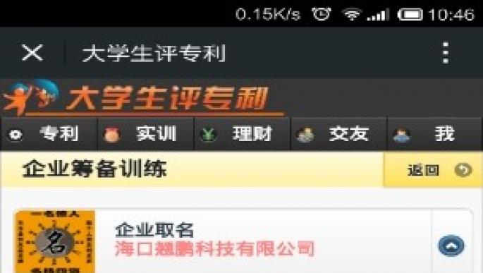 | 企業(yè)說明: | 海口翹鵬科技有限公司專注于大學(xué)生評(píng)專利創(chuàng)新創(chuàng)業(yè)訓(xùn)練平臺(tái)的研發(fā)和推廣,所屬領(lǐng)域:互聯(lián)網(wǎng)+大學(xué)生+專利點(diǎn)評(píng)+創(chuàng)新創(chuàng)業(yè)訓(xùn)練+金融,大學(xué)生評(píng)專利目的是為了解決我國專利推廣難和大學(xué)生創(chuàng)業(yè)就業(yè)難兩大痛點(diǎn),它用發(fā)明專利來給大學(xué)生進(jìn)行創(chuàng)新創(chuàng)業(yè)訓(xùn)練,用大學(xué)生評(píng)專利的形式間接幫助發(fā)明人宣傳和推廣專利,幫助投資人篩選優(yōu)質(zhì)的專利投資項(xiàng)目,平臺(tái)提供了一種跨界的服務(wù),處在互聯(lián)網(wǎng)、教育、科技、創(chuàng)業(yè)、專利、融資的交匯點(diǎn)上,它讓大學(xué)生成為主角,成為溝通企業(yè)、發(fā)明人和投資人的橋梁,普通的大學(xué)生可以旁觀其他人創(chuàng)新、創(chuàng)業(yè),在參與和體驗(yàn)真實(shí)的創(chuàng)新,創(chuàng)業(yè)過程中,獲得與專業(yè)相關(guān)的實(shí)踐經(jīng)驗(yàn),學(xué)習(xí)到發(fā)明專利和創(chuàng)新創(chuàng)業(yè)基本知識(shí),為日后走上創(chuàng)業(yè)之路奠定基礎(chǔ)。 大學(xué)生評(píng)專利平臺(tái)開創(chuàng)了一個(gè)全新的商業(yè)模式,通過獨(dú)特的形式盤活專利市場(chǎng),能夠提升大學(xué)生就業(yè)能力和創(chuàng)新創(chuàng)業(yè)能力,它順應(yīng)了“大眾創(chuàng)業(yè),萬眾創(chuàng)新”的潮流,是國家政策所鼓勵(lì)的,如果這種模式得以在全國推廣,它就會(huì)成為解決我國專利推廣難和大學(xué)生創(chuàng)業(yè)就業(yè)難等問題的最佳方案,進(jìn)而整合多方資源,推動(dòng)“中國制造”向“中國創(chuàng)造”蛻變,帶來巨大的經(jīng)濟(jì)效益和社會(huì)效益。 公司宗旨:為發(fā)明人圓夢(mèng),為大學(xué)生創(chuàng)業(yè)圓夢(mèng)!讓中國的專利不再難推廣!