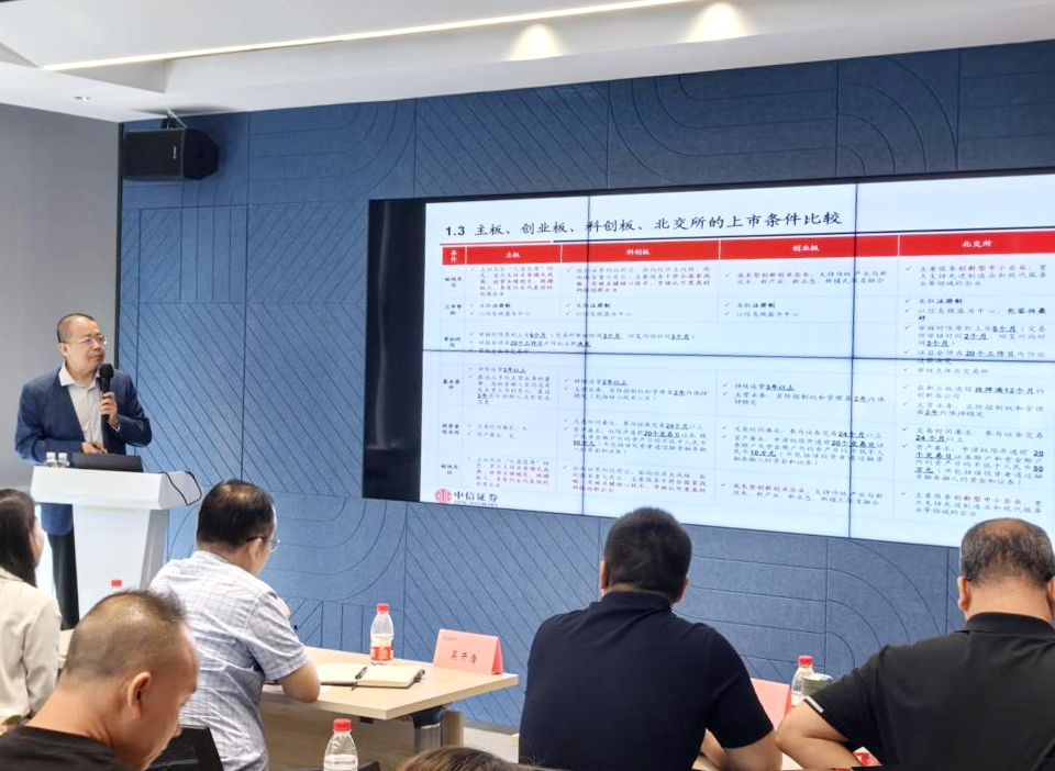 會上,北京證券交易所專家圍繞北交所的基本情況、運行情況、市場制度特色及未來服務(wù)方向進行了培訓(xùn)輔導(dǎo)。中信證券專家從企業(yè)上市的目的、意義及如何選擇上市路徑展開講解,并就企業(yè)如何結(jié)合監(jiān)管要求,從實務(wù)層面分析企業(yè)上市需要準(zhǔn)備的財務(wù)、法律、業(yè)務(wù)等各項工作進行了詳細(xì)解讀,同時還圍繞A股上市流程、北交所上市實務(wù)操作等企業(yè)關(guān)注的內(nèi)容進行了經(jīng)驗分享。