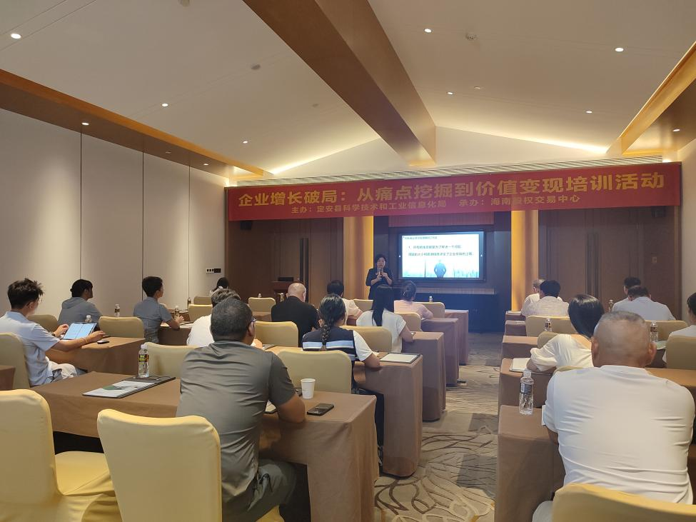 為助力本地中小企業(yè)應(yīng)對(duì)市場(chǎng)挑戰(zhàn),突破增長(zhǎng)瓶頸,10月14日,由定安縣科學(xué)技術(shù)和工業(yè)信息化局主辦、海南股權(quán)交易中心承辦的“企業(yè)增長(zhǎng)破局:從痛點(diǎn)挖掘到價(jià)值變現(xiàn)”專(zhuān)題培訓(xùn)活動(dòng),在定安成功舉辦。本次活動(dòng)吸引了定安...