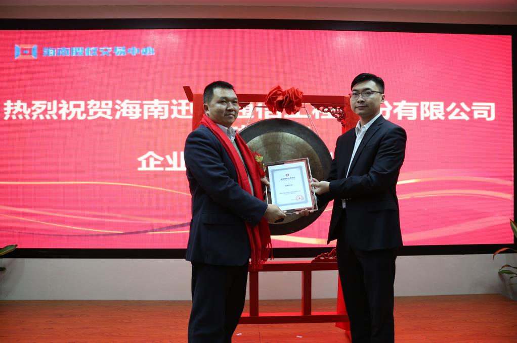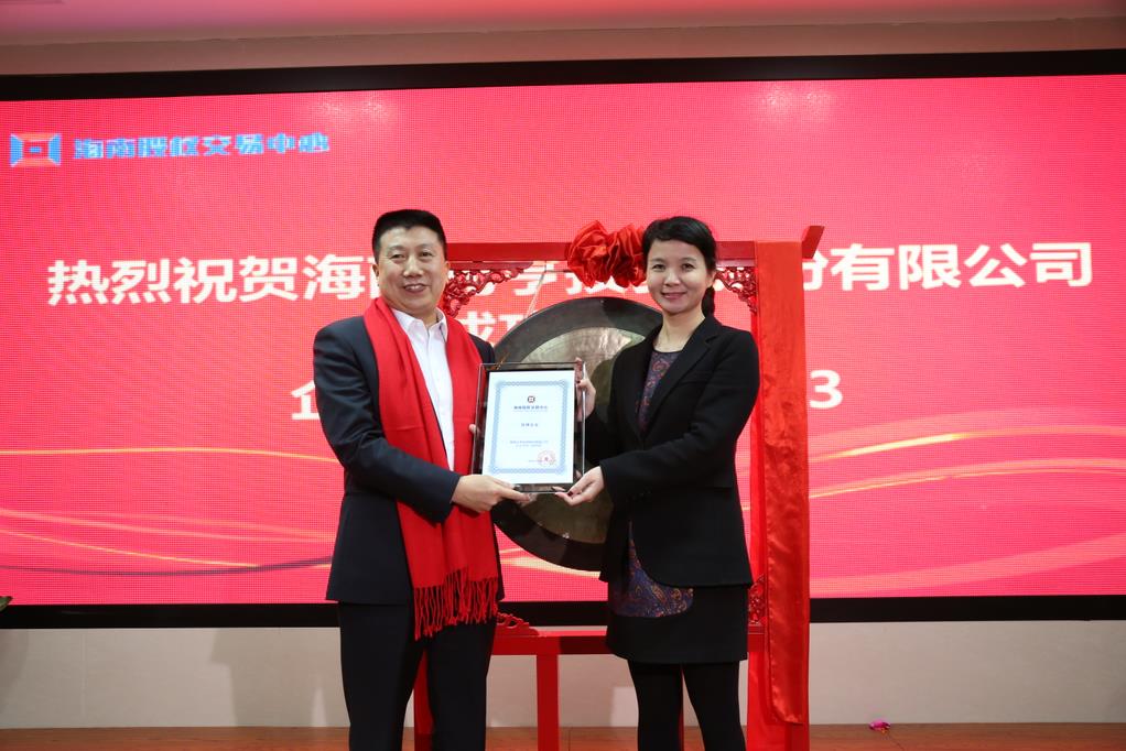 12月28日,海南股權(quán)交易中心成立兩周年之際,在股交中心“助力中小微企業(yè)發(fā)展工程”啟動暨企業(yè)集體掛牌儀式上,一共有10家企業(yè)正式掛牌股交中心,海南金融控股股份有限公司副總經(jīng)理吳子魁,海南股權(quán)交易中心副總經(jīng)理吳惠玉、副總經(jīng)理程棟才、副總經(jīng)理許博分別與企業(yè)共同鳴鑼并向企業(yè)代表授牌。