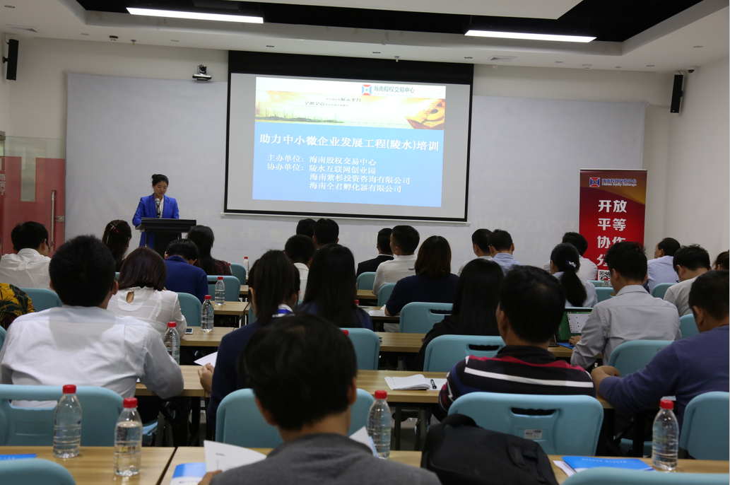 2月20日下午,海南股權(quán)交易中心主辦的“助力中小微企業(yè)發(fā)展工程”系列活動(dòng)——陵水站成功舉辦。本次活動(dòng)在陵水互聯(lián)網(wǎng)創(chuàng)業(yè)園、海南仝君孵化器有限公司、海南紫衫投資咨詢有限公司共同協(xié)辦下舉行,活動(dòng)旨在通過“助力中小微企業(yè)發(fā)展工程”使更多的中小微企業(yè)獲得發(fā)展。海南股權(quán)交易中心副總經(jīng)理程棟才,陵水互聯(lián)網(wǎng)創(chuàng)業(yè)園負(fù)責(zé)人、海南仝君孵化器有限公司運(yùn)營總監(jiān)陳烈,中國股權(quán)激勵(lì)研究院海南分院院長、深圳華一世紀(jì)海南分公司總經(jīng)理李瑞,海南銀行陵水支行、屯昌縣農(nóng)村信用社,以及50家企業(yè)家代表參加此次培訓(xùn)。