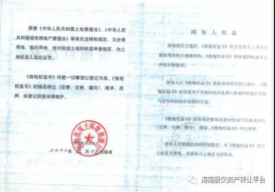 (《換地權(quán)益書》-持有人權(quán)益頁)
