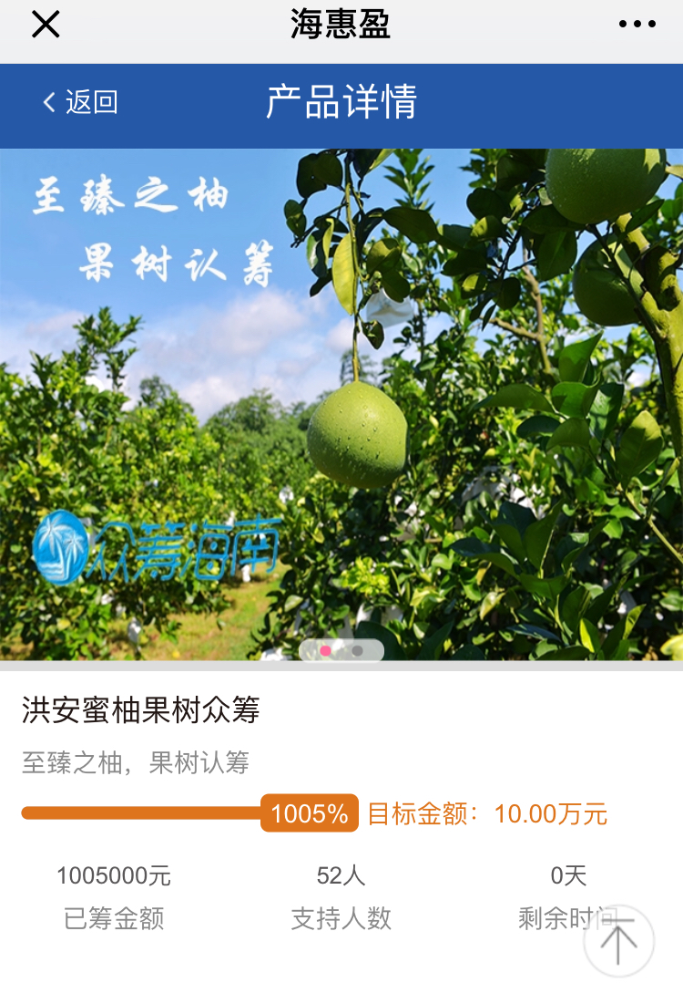 去年底,為了幫助企業(yè)解決短期資金流轉(zhuǎn)問(wèn)題,海南股權(quán)交易中心聯(lián)合掛牌企業(yè)澄邁洪安農(nóng)業(yè)開(kāi)發(fā)有限公司發(fā)起了存續(xù)期為9個(gè)月的“洪安蜜柚果樹(shù)眾籌”項(xiàng)目,項(xiàng)目在股交中心綜合金融服務(wù)平臺(tái)“?;萦卑l(fā)布后短時(shí)間內(nèi)達(dá)成了募集資金目標(biāo),最終募集金額達(dá)100.5萬(wàn)元。
