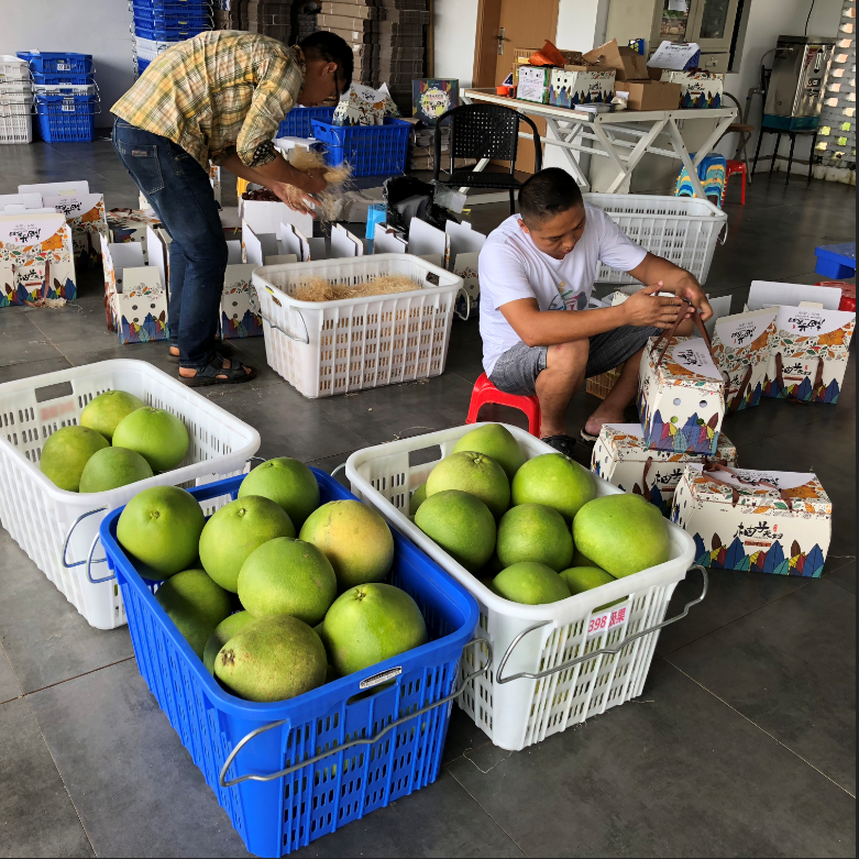 夏樹(shù)蒼翠,驕陽(yáng)似火,烈日炎炎下洪安莊園的工人們依舊熱情飽滿的對(duì)采摘下來(lái)的蜜柚一一進(jìn)行稱重、分類、打包和入庫(kù)。