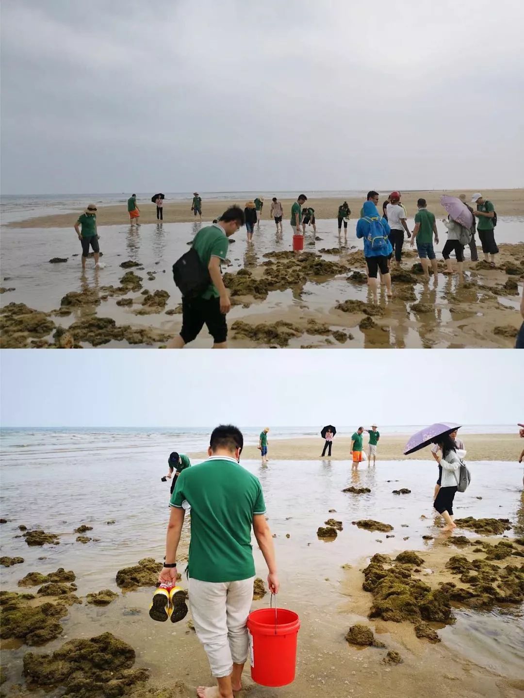 在聽完趕海內(nèi)容及注意事項講解后,大家三三兩兩,組隊而行,邊呼吸著海邊清新的空氣,邊欣賞沿岸廣袤的淺海灘風景,體驗逐浪趕海。
