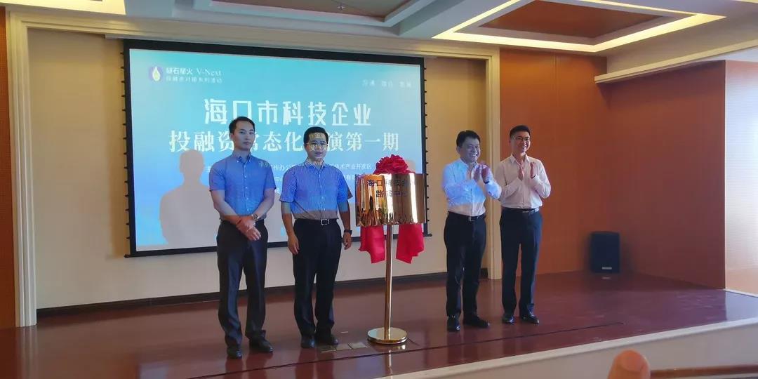 路演開始前,海口國(guó)家高新技術(shù)產(chǎn)業(yè)開發(fā)區(qū)管委會(huì)主任林一民,海口市政府副秘書長(zhǎng)、市金融辦副主任王品文,海南股交執(zhí)行總經(jīng)理程棟才,深圳證券信息有限公司科技金融事業(yè)部區(qū)域代表劉建偉一同為“??诳萍冀鹑诼费葜行摹苯遗?。