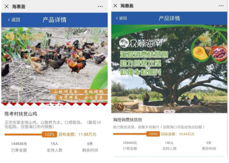 先后打造“臨高縣隆道雞”、“陳考村蜂蜜”、“加六村木瓜”、“陳考村山雞”、“海南控股愛心扶貧包”等扶貧眾籌項(xiàng)目。