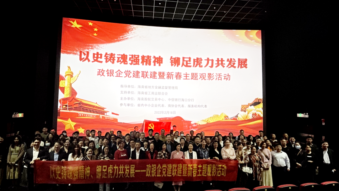 為發(fā)揮黨建引領(lǐng)作用,加強(qiáng)政銀企溝通互動(dòng),近日,海南股交聯(lián)合中信銀行??诜中虚_(kāi)展“以史鑄魂強(qiáng)精神、鉚足虎力共發(fā)展”政銀企黨建聯(lián)建暨新春主題觀影活動(dòng)。
